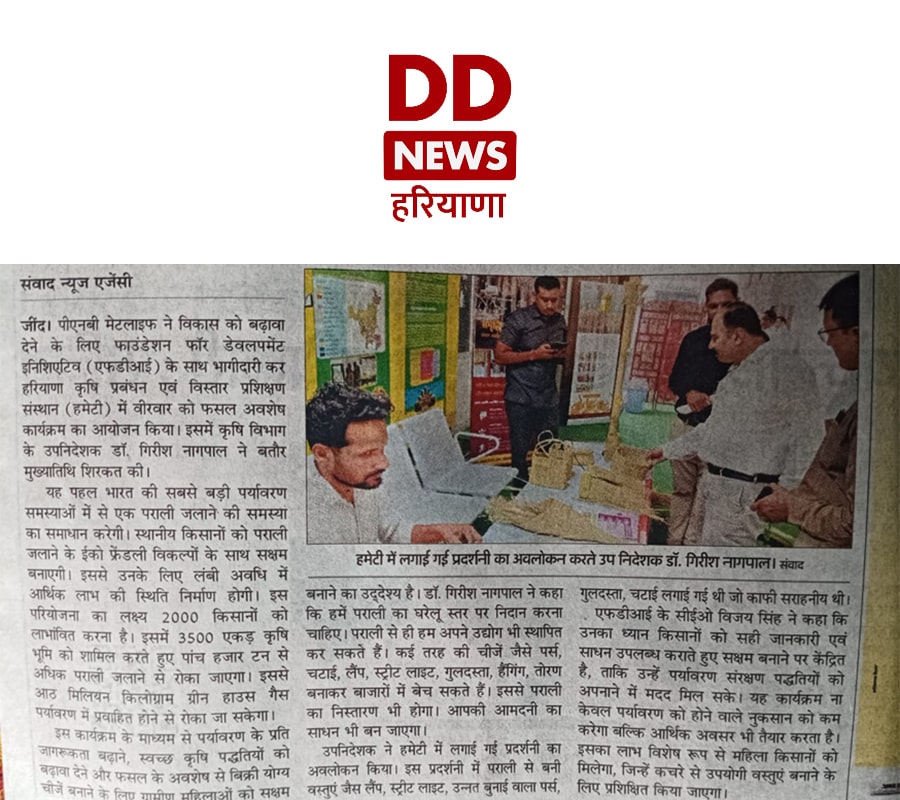 Jind, Haryana, Monday, January 29, 2024: The Foundation for Development Initiative (FDI) and NatWest Group India have partnered and launched a wide-scale project, ‘Harit Dhara, Saaf Vayu’ to mitigate crop residue burning in the district of Jind, Haryana.